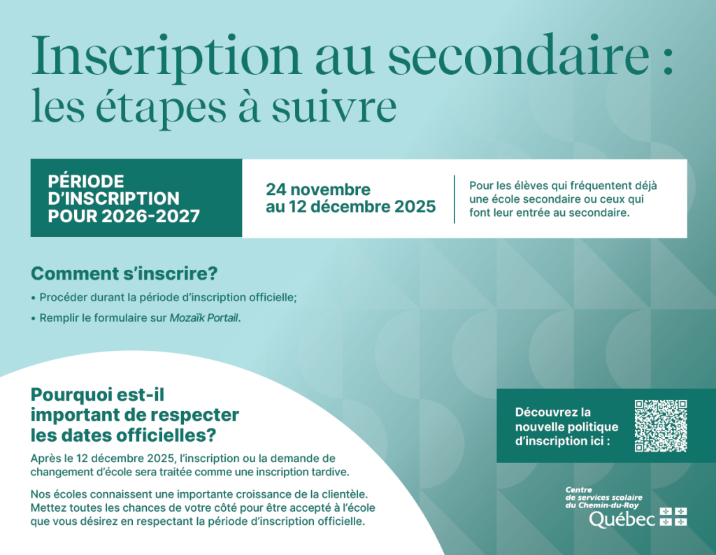 - Pour ceux qui ne fréquentent pas notre CSS (donc les nouveaux élèves), ils devront se rendre sur le site Web de l’école secondaire du bassin afin de s’inscrire.