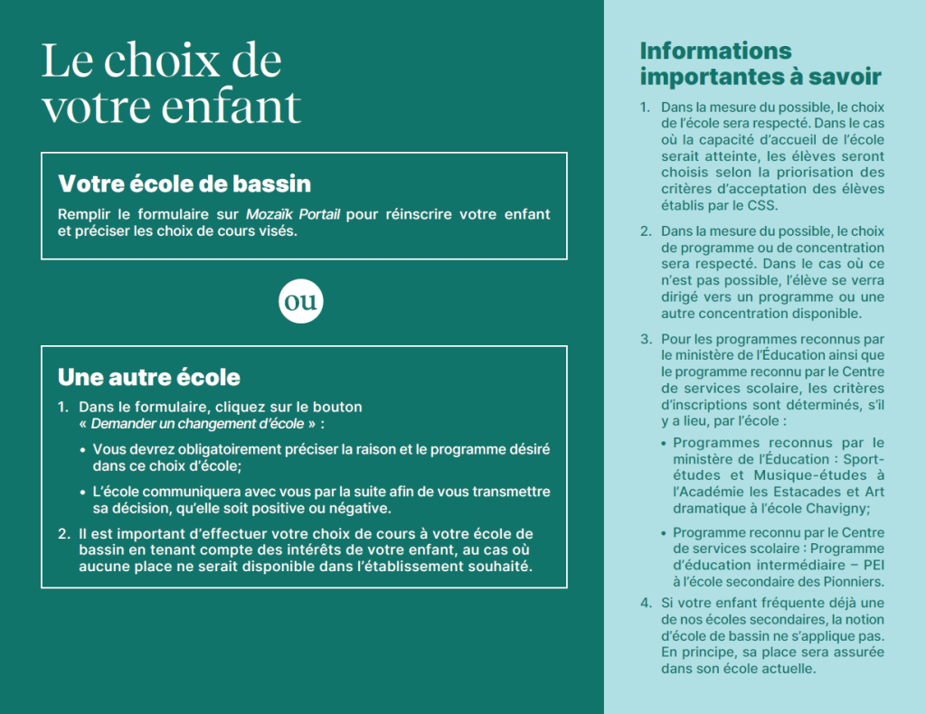 - Pour ceux qui fréquentent déjà notre CSS, la réinscription se fera via Mozaïk.